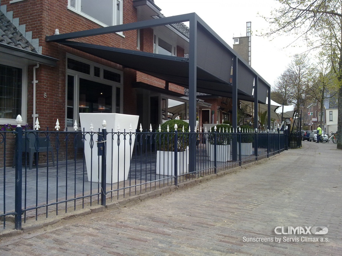 Markýza Kubus je navržena v základním provedení jako samostatně stojící pergola se čtyřmi sloupky s látkou ve střešní části. Moderní řešení se hodí především pro restaurace s venkovním posezením a venkovní terasy. Markýza je ovládána pomocí dvou motorů pro horizontální a vertikální část. Motory na sobě nejsou závislé.