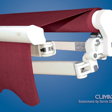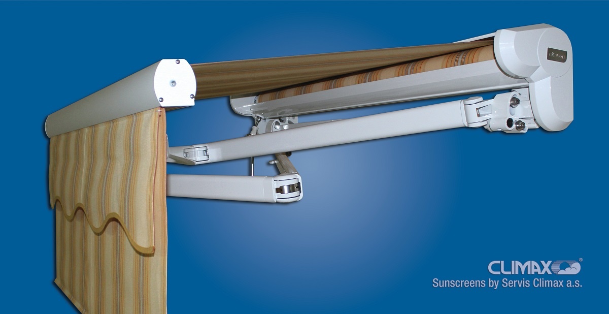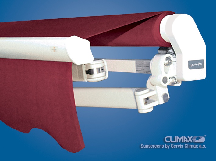 Hlavní výhodou této markýzy je možnost vyrobit výsen větší než šířku. Je to díky konstrukčnímu uspořádání ramen, která jsou nad sebou, nebo-li překřížená. Krycí stříška ano, výsuvný volán ano.